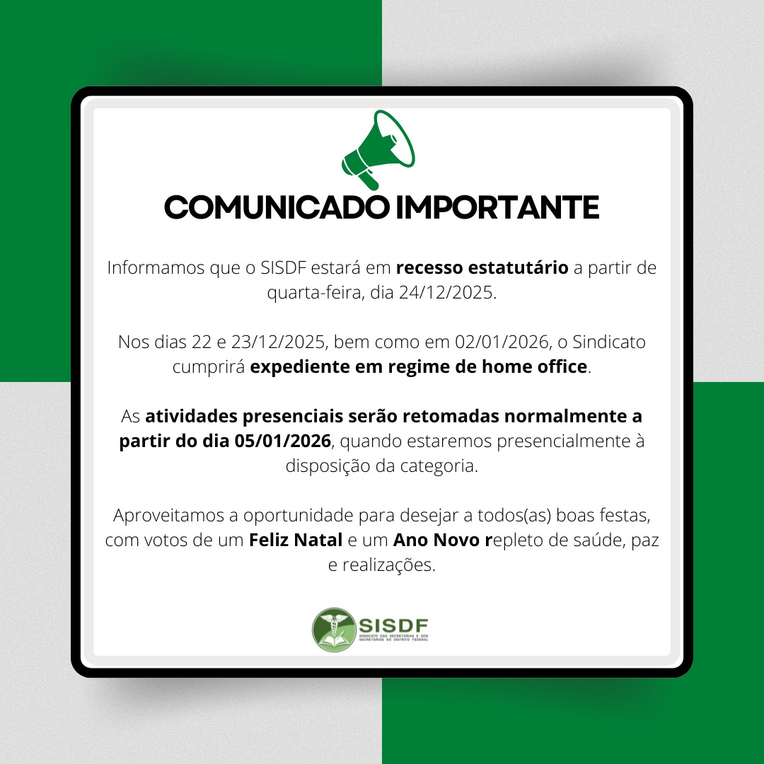 O Sindicato das Secretárias e dos Secretários do Distrito Federal – SISDF é uma organização sindical criada para defender, representar e reivindicar melhores condições de vida e de trabalho para a categoria.