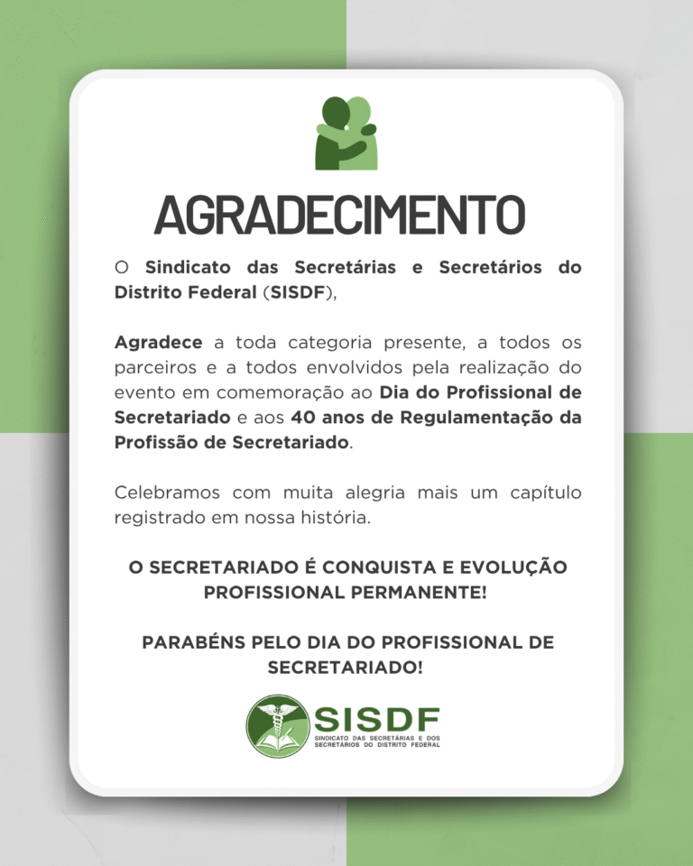 O Sindicato das Secretárias e dos Secretários do Distrito Federal – SISDF é uma organização sindical criada para defender, representar e reivindicar melhores condições de vida e de trabalho para a categoria.